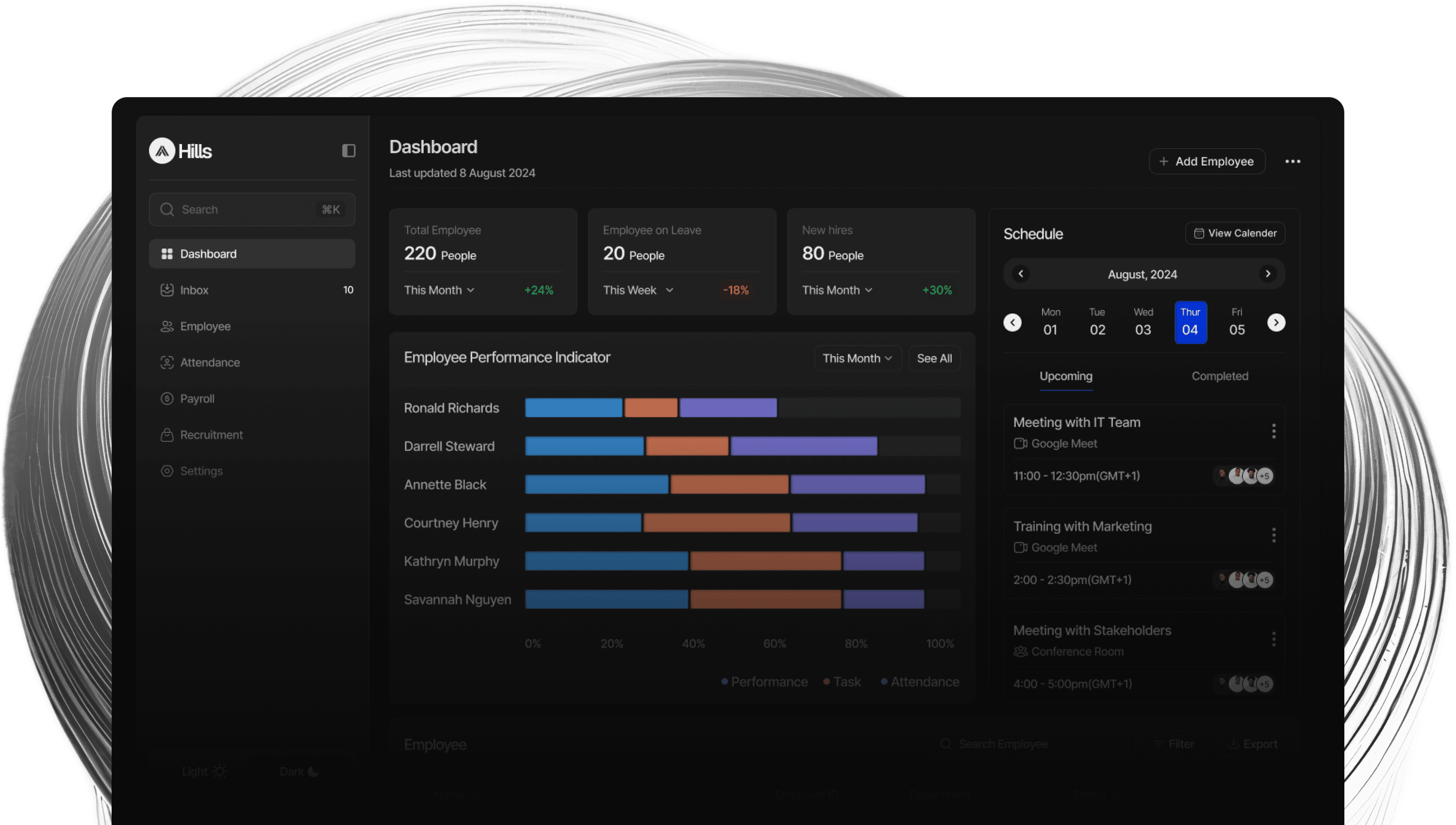 From onboarding to payroll, manage your entire workforce in one simple, smart platform—built for modern teams.